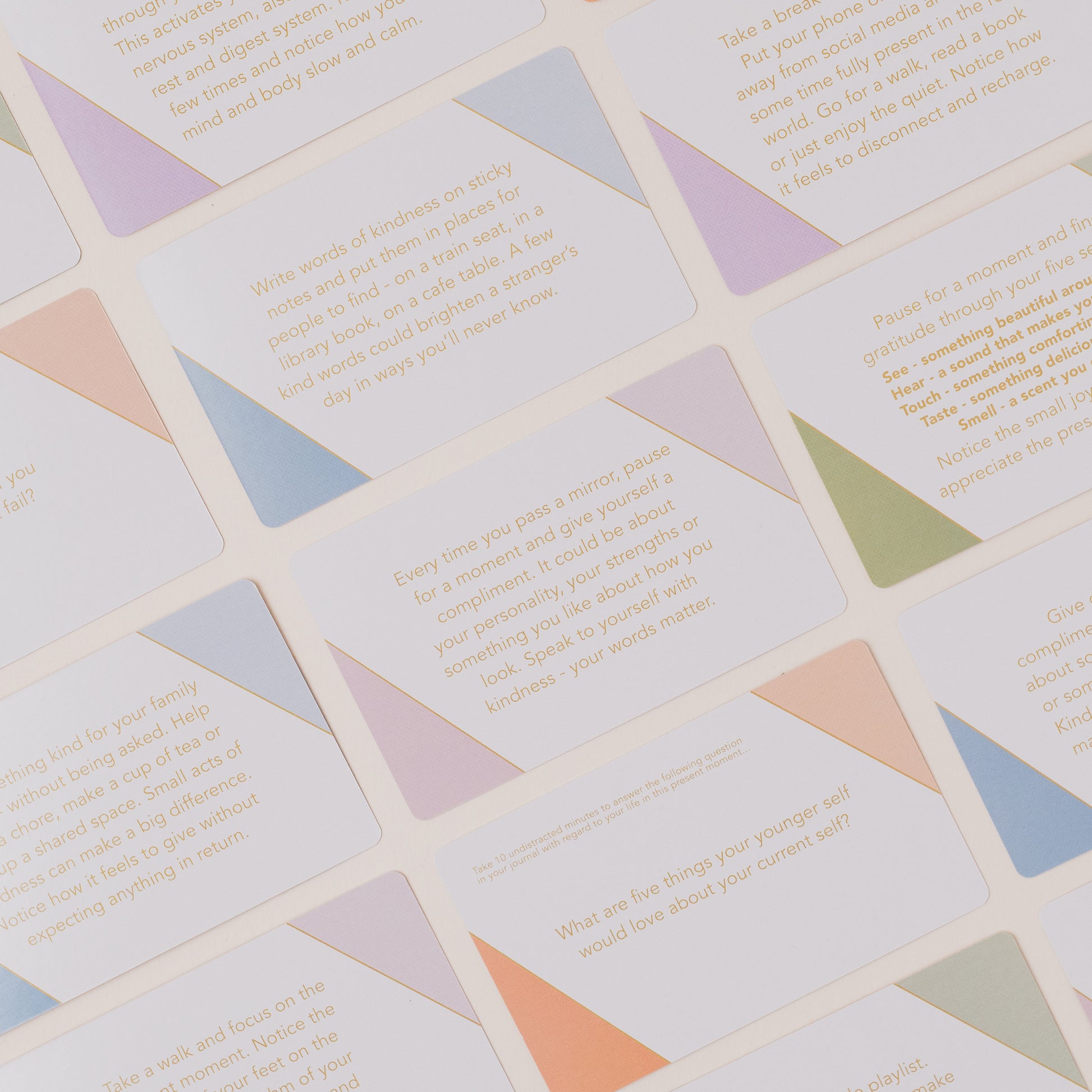 HOW TO USE Teens can choose a card each day from either deck, a wellbeing habit to put into practice, or an affirmation to repeat throughout the day. Encourage them to keep the decks somewhere visible, like their desk or bedside table, so support is always close at hand.